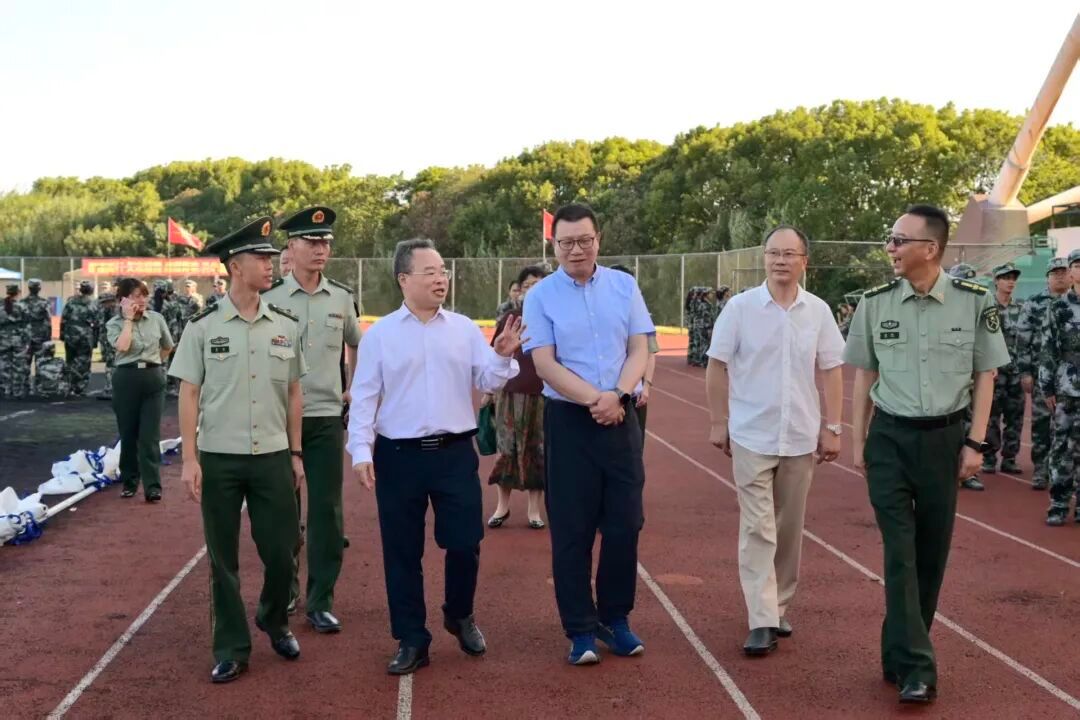 9月11日,校党委书记郭庆松,校长汪小帆,副校长、学校军训工作领导小组组长毛祥东来到军训现场,亲切慰问正在参训的师生和教官。党政办公室主任孙劼,党委学生工作部人民武装部部长、学生军训旅政委袁翔陪同走访慰问。